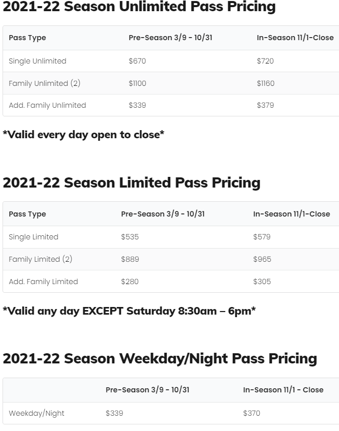 From the following photo you can see the prices to purchase the Catalooche ski pass, which will give you access to the resort and all its slopes.